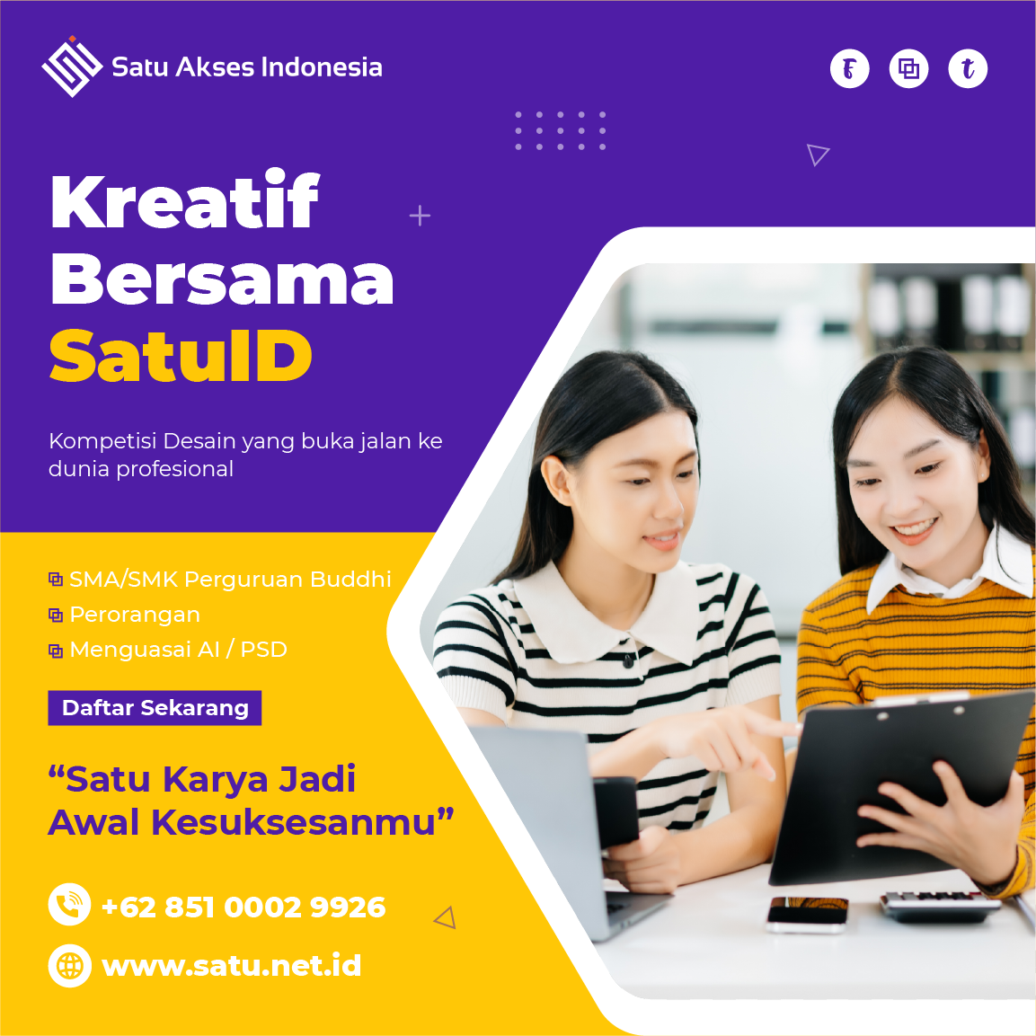 Kreatif Bersama SatuID merupakan kelanjutan dari program kolaborasi antara PT Satu Akses Indonesia dan Sekolah Perguruan Buddhi, yang sebelumnya telah menyelenggarakan seminar bertajuk Berkarir Sejak di Bangku Sekolah. Kegiatan ini dirancang untuk mendorong kreativitas, inovasi, dan pengembangan potensi generasi muda dalam menghadapi tantangan dunia digital dan profesional sejak dini.
